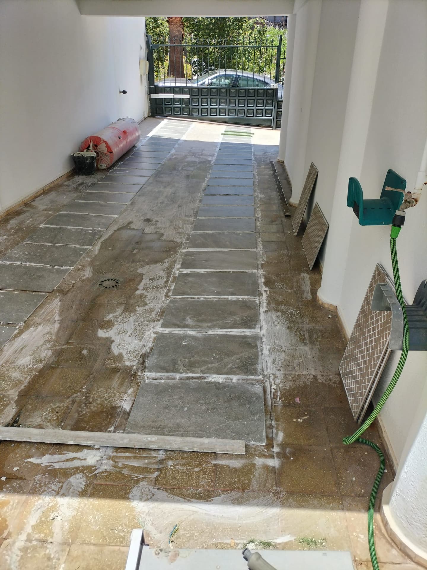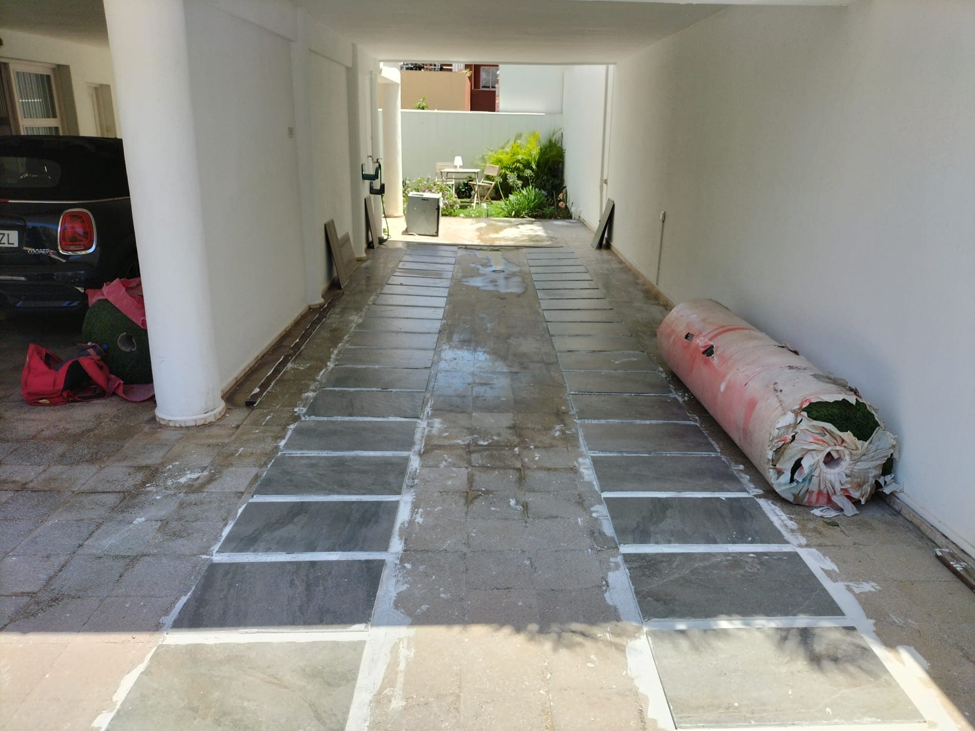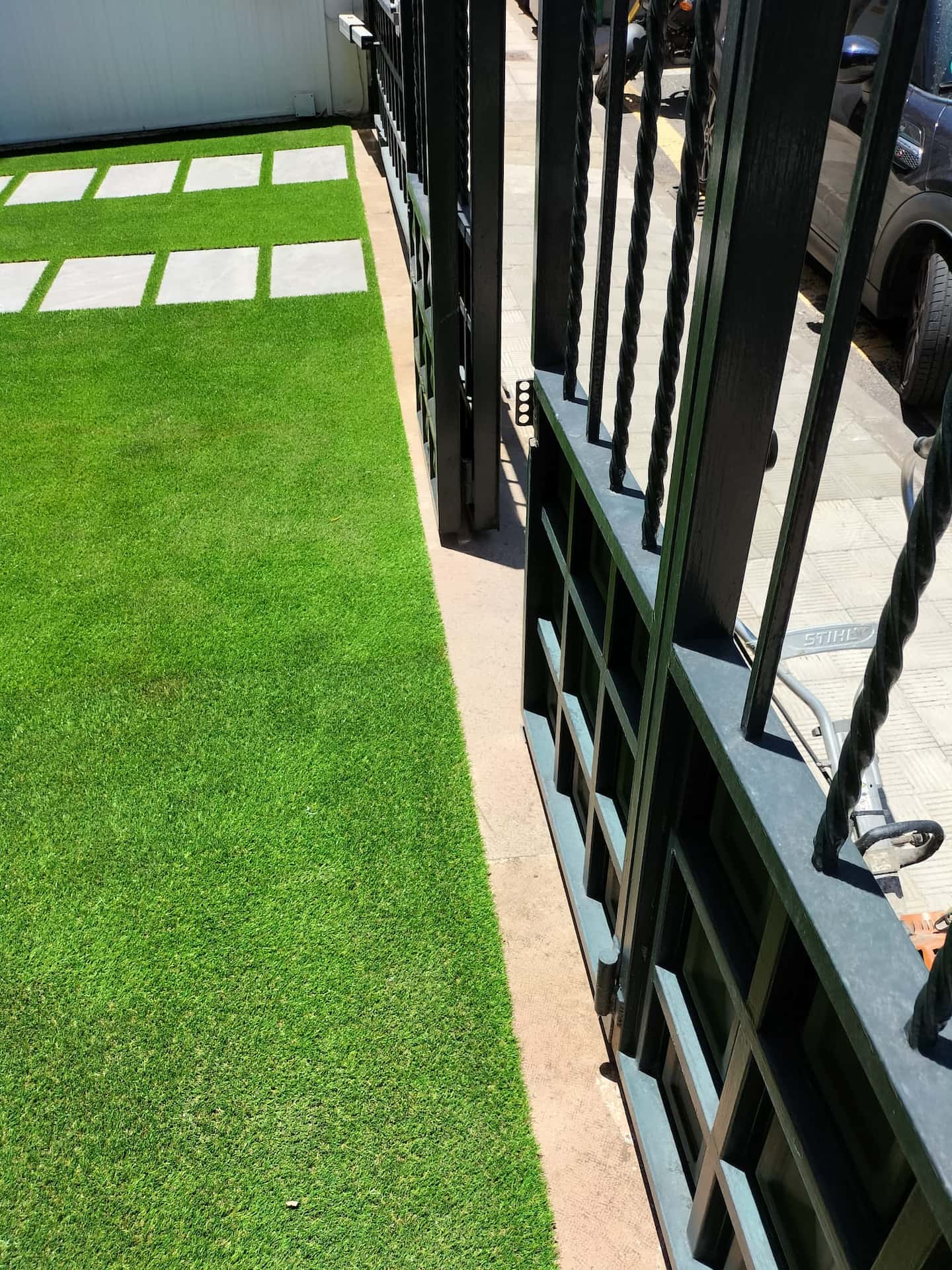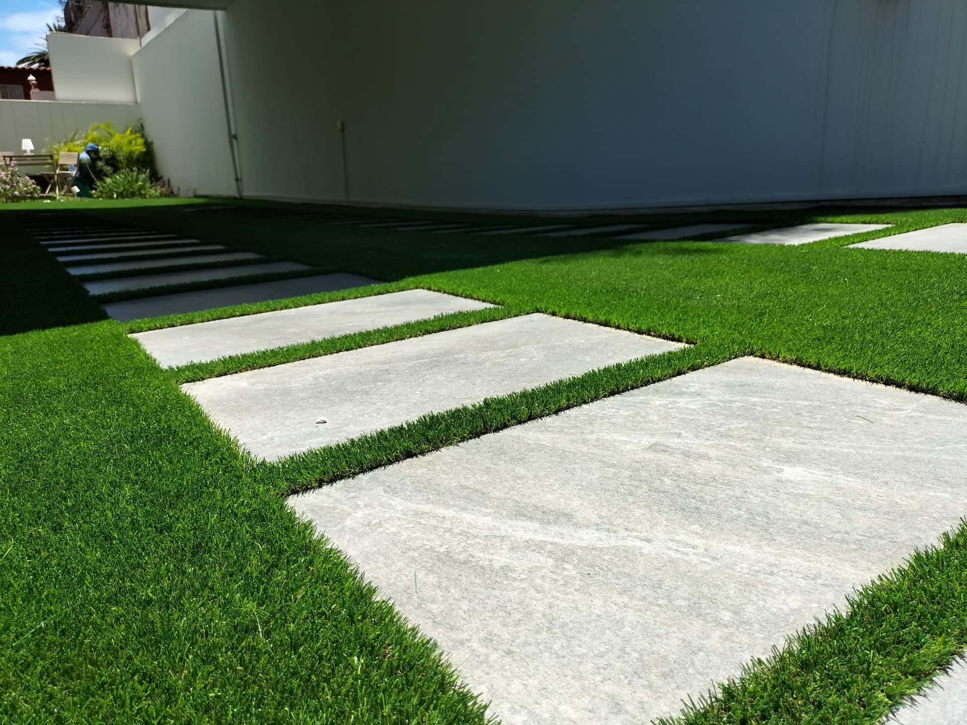 Césped artificial en garaje residencial